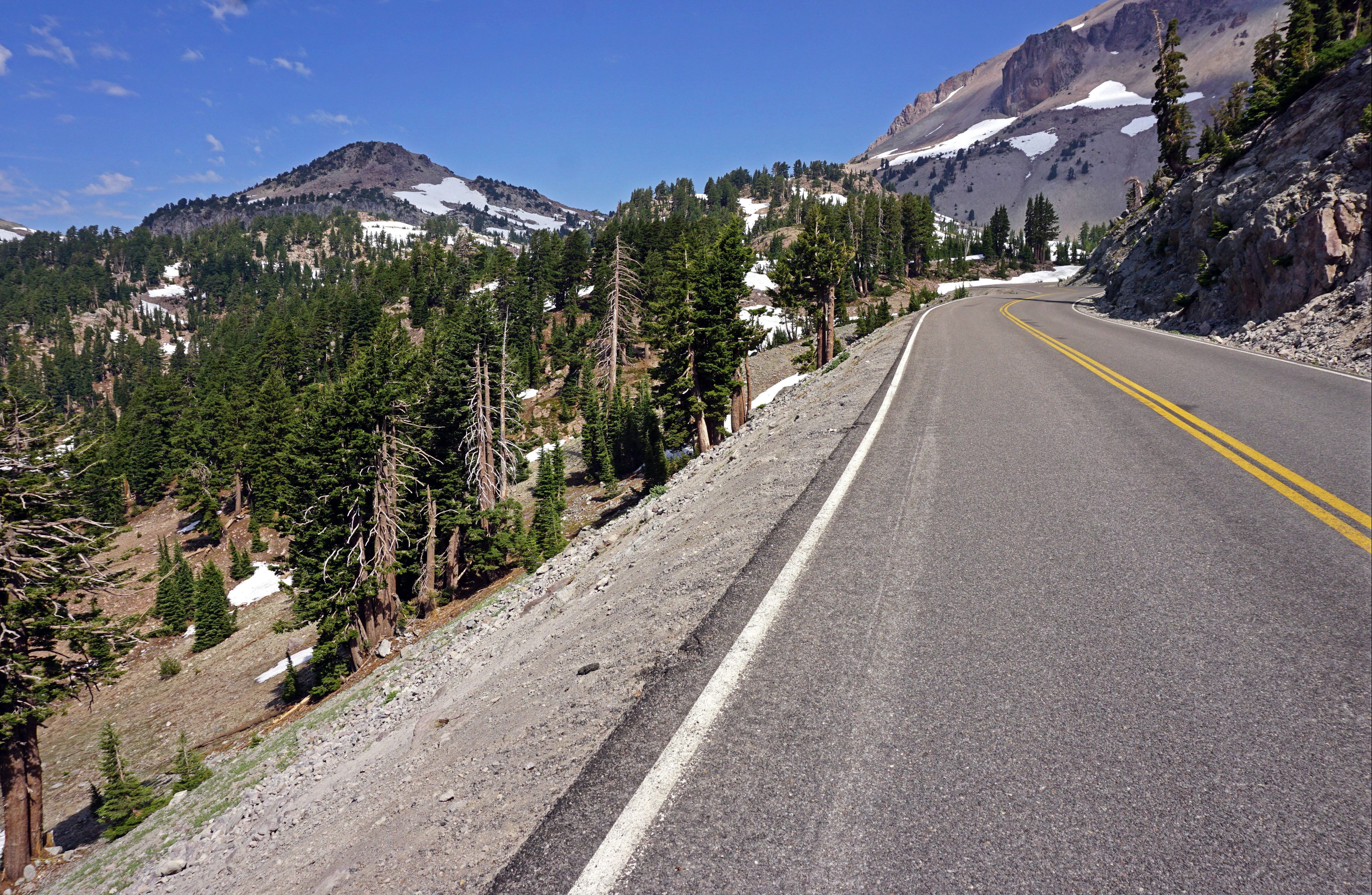 Kurz hinter dem Lake Helen erreichen wir den höchsten Punkt des Lassen Peak Highways. Von hier ließe sich der Lassen Peak relativ komfortabel besteigen, in Anbetracht der Schneemassen verzichten wir aber darauf.